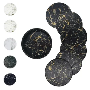 Posavasos de mármol de cuero Artificial, tapete para taza de café y bebidas 6und